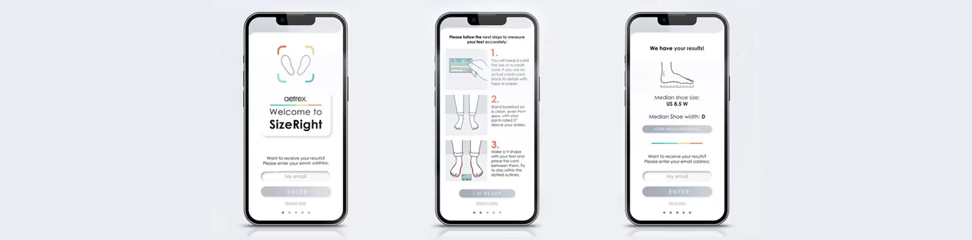 SizeRight can also be accessed through a website when shopping on participating sites. This web version allows for an integrated experience while browsing online, without having to leave the website where you are shopping. For example, you can check it out here on aetrex.com while browsing on smartphone or tablet.