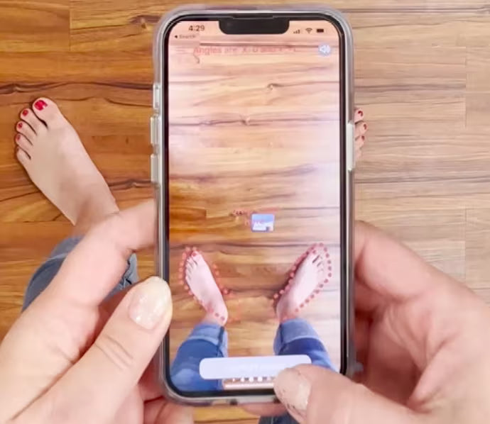 Aetrex’s SizeRight Mobile App allows you to measure your feet with your phone or iPad. Downloadable from the Apple store, the app only requires one photo (aka “one click”) to get your accurate foot size in 2-dimensions (length and width). After a quick photo, you’ll receive your Median Shoe Size and shoe width. And you can have your foot data sent right to you via email