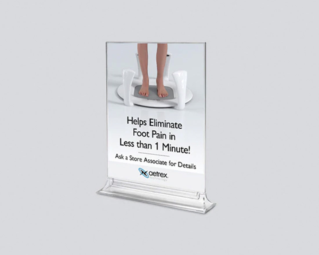 Introducing our 8.5" x 11" sign holder set, perfect for displaying Aetrex brand messaging and product details on tabletops throughout your store.