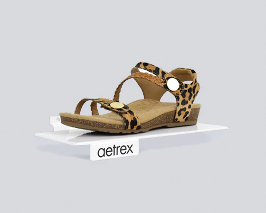 Elevate your store's presentation with our all-white, metal Aetrex branded shoe shelves. These sturdy shelves provide a clean platform for showcasing Aetrex footwear on your slatwall.