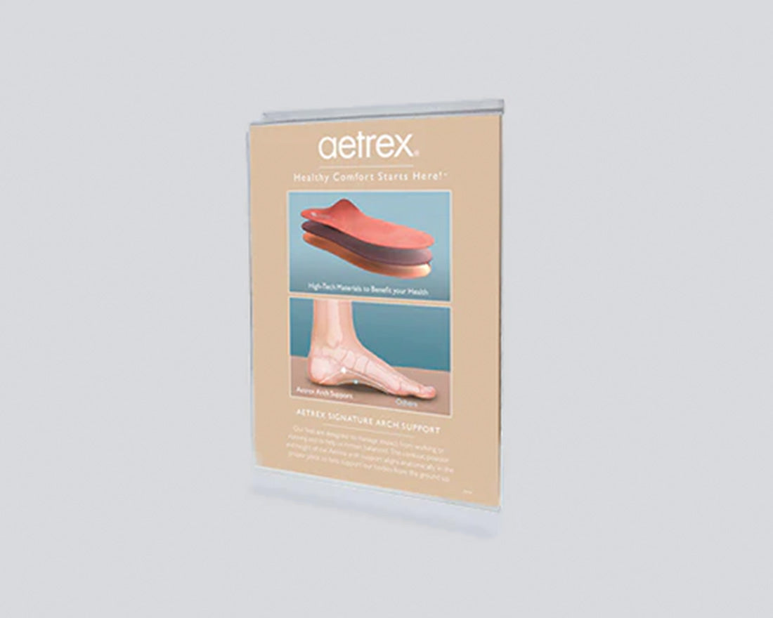 Introducing the 8.5" x 11" clear plexi sign holder, meticulously crafted to seamlessly clip into your slatwall for a sleek and professional presentation.
